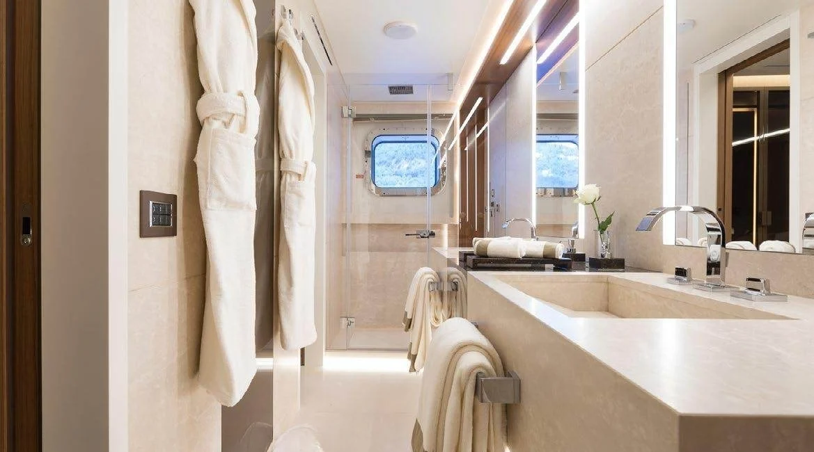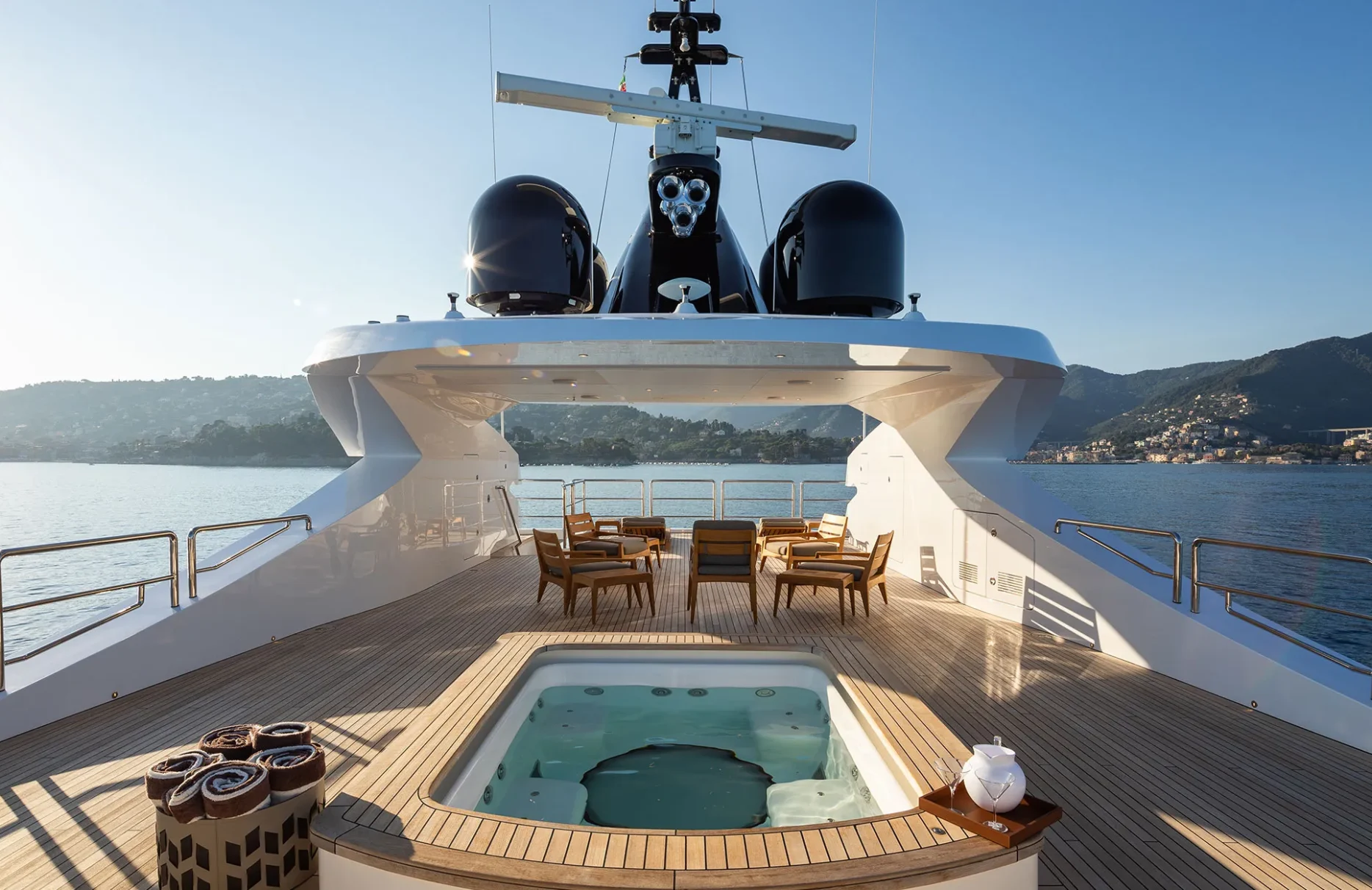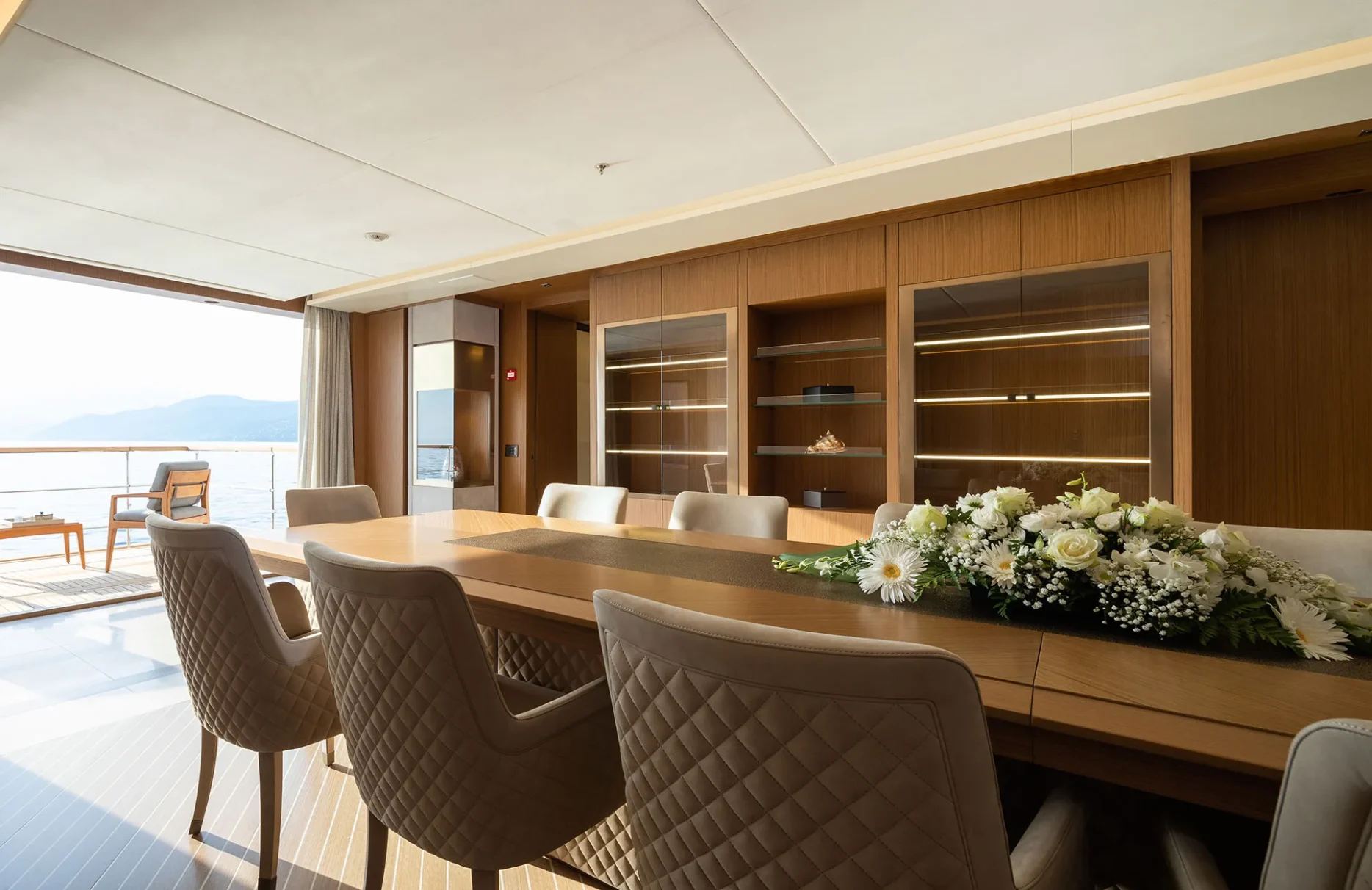 An elevator services four of her five decks, providing effortless access throughout the vessel. Whether you are looking for a luxury yacht rental in Sardinia or a stylish cruise along the coast, ALFA offers unparalleled comfort.
