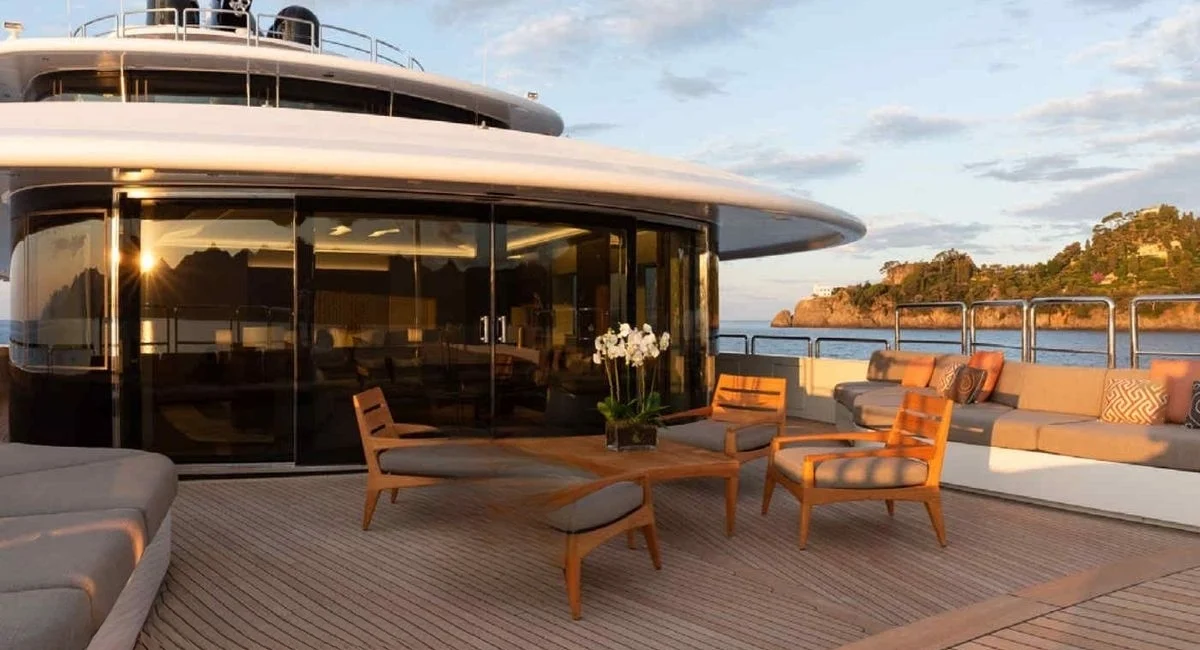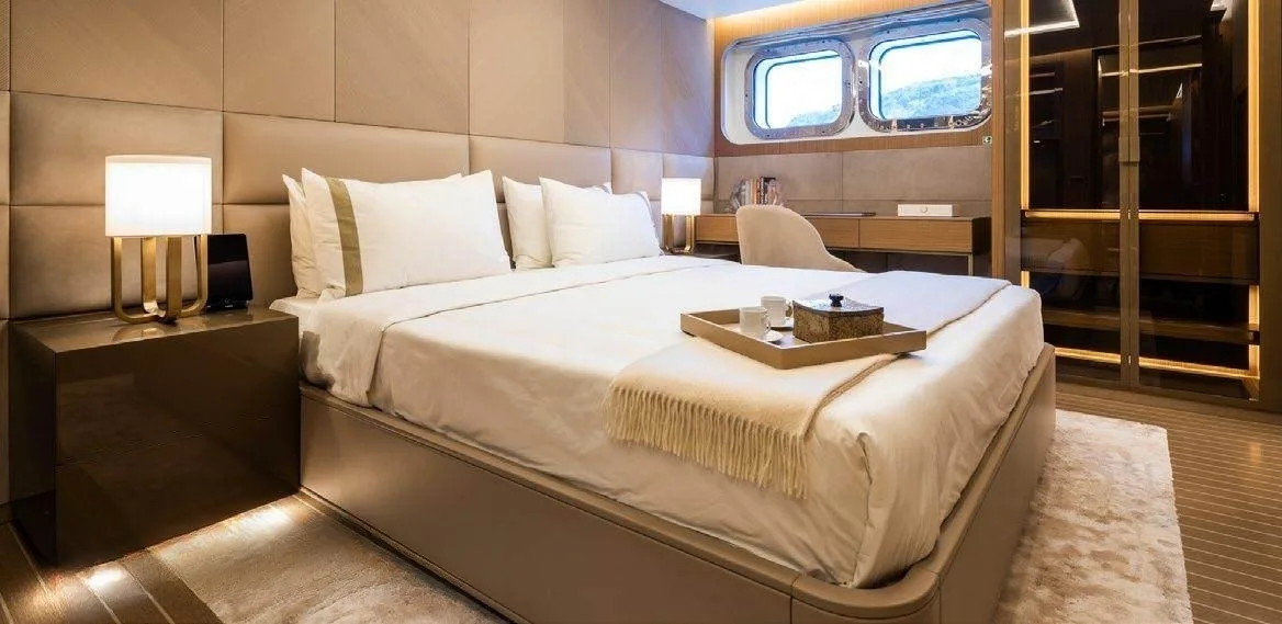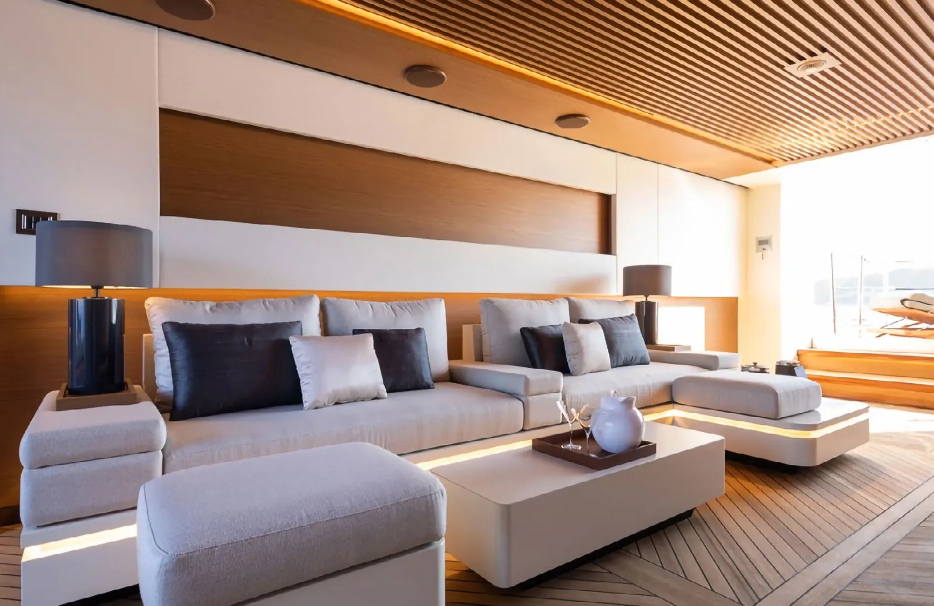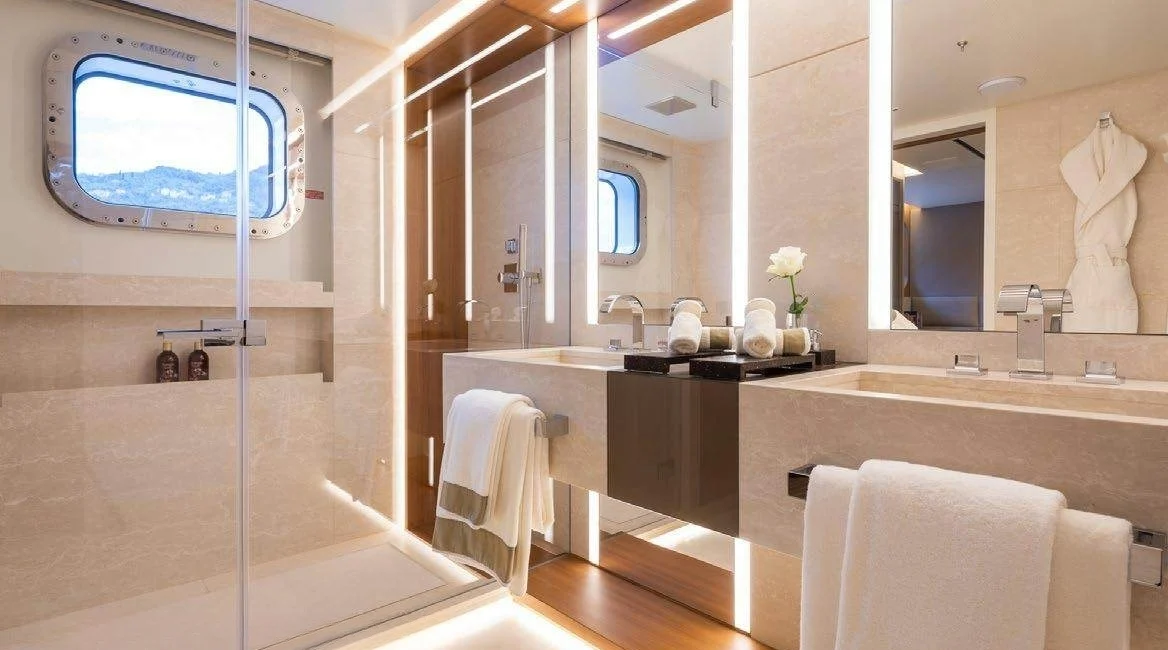 An elevator services four of her five decks, providing effortless access throughout the vessel. Whether you are looking for a luxury yacht rental in Sardinia or a stylish cruise along the coast, ALFA offers unparalleled comfort.