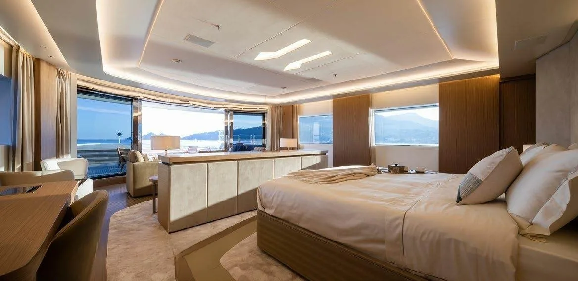 Master Suite: A 120m² sanctuary with panoramic bow views.