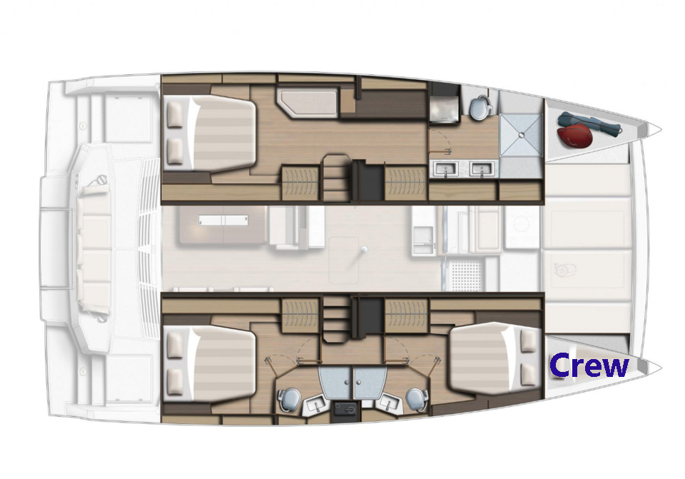 With accommodation for up to 9 guests (8 recommended for optimal comfort), this catamaran is perfectly suited for families or groups of friends looking to enjoy a premium sailing experience. Generous living spaces, natural light, and thoughtful design create a welcoming onboard environment, perfect for both relaxing and socializing throughout your journey.