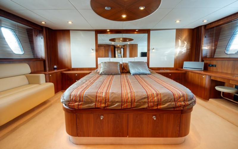 Situated at the bow of the yacht, the VIP cabin provides a queen-size bed and stylish decor.