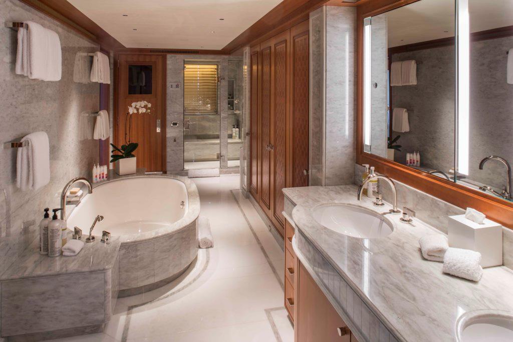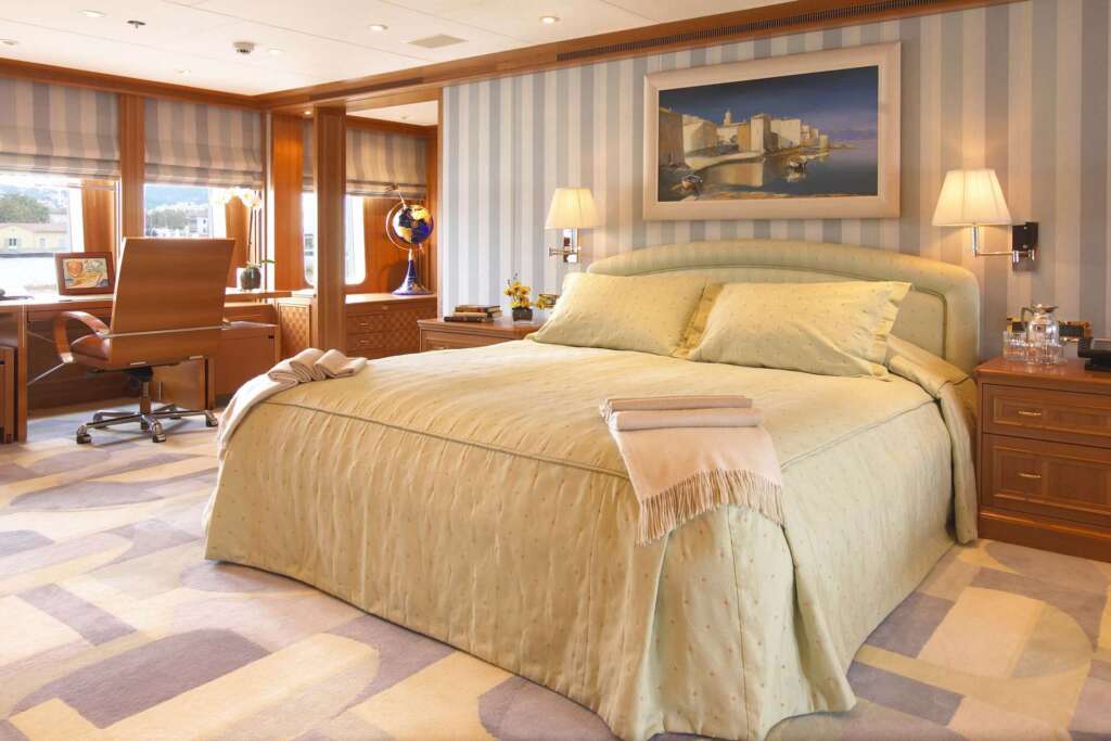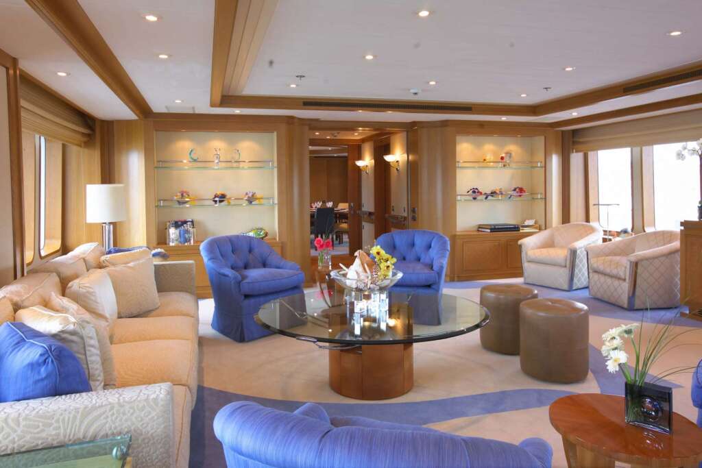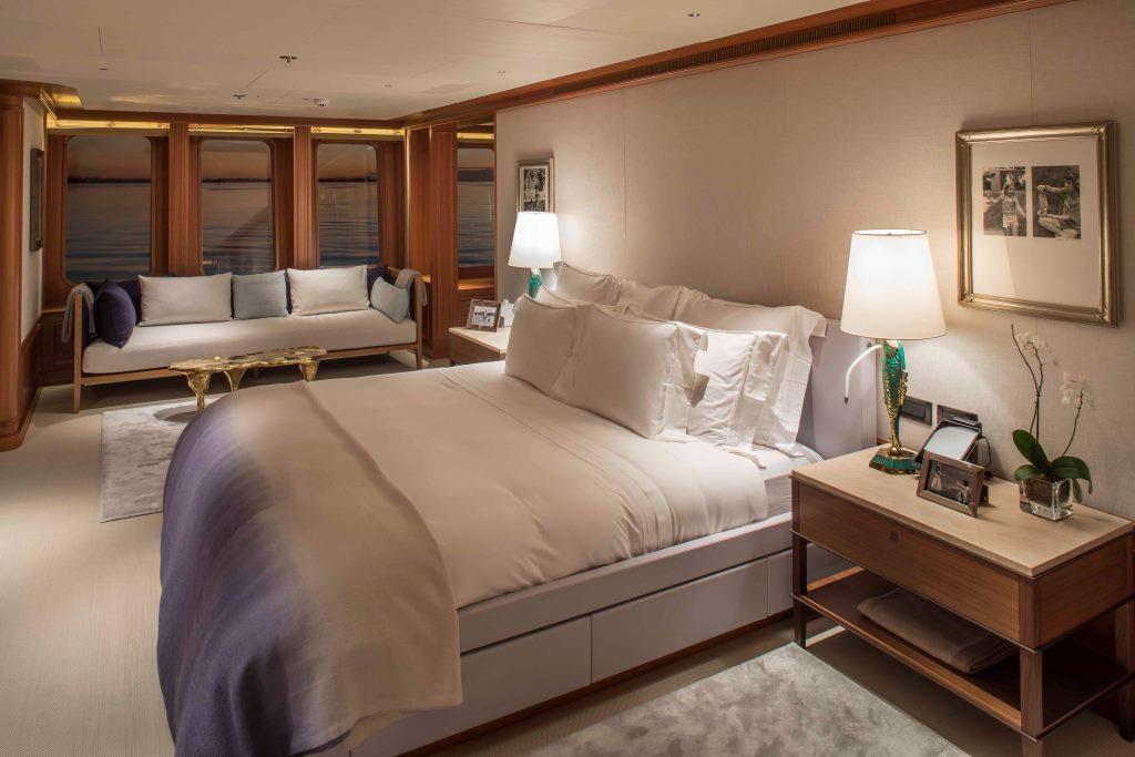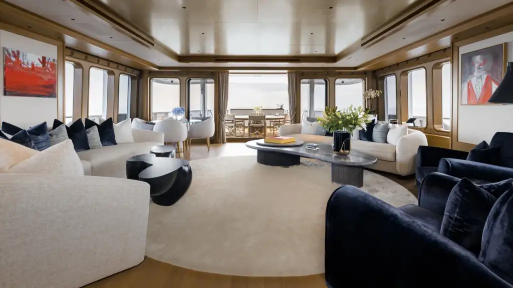 SAMADHI offers exceptional accommodation for up to 12 guests in 6 elegantly appointed cabins, crafted to deliver privacy, comfort, and refined luxury throughout your charter. The full-beam Master Suite, located on the main deck, is a true sanctuary featuring a private office, walk-in wardrobe, and an exquisite marble ensuite bathroom complete with sauna, bathtub, and separate shower — the perfect retreat for owners or principal guests seeking ultimate relaxation. On the lower deck, guests will find two spacious double cabins, ideal for couples, along with two versatile convertible twin cabins that can easily be adapted to double configurations, making them perfect for families or groups with varied sleeping needs. An additional children’s or staff cabin completes the flexible layout, ensuring all guest preferences are accommodated. To complement the guest experience, SAMADHI provides comfortable crew quarters for up to 17 crew members, guaranteeing first-class service, seamless operations, and a discreet yet attentive onboard atmosphere throughout the voyage. Designed for long-range cruising and premium charter comfort, SAMADHI’s layout balances personal privacy with generous shared spaces — making her ideal for family charters, corporate retreats, or exclusive gatherings in the South of France and beyond.
