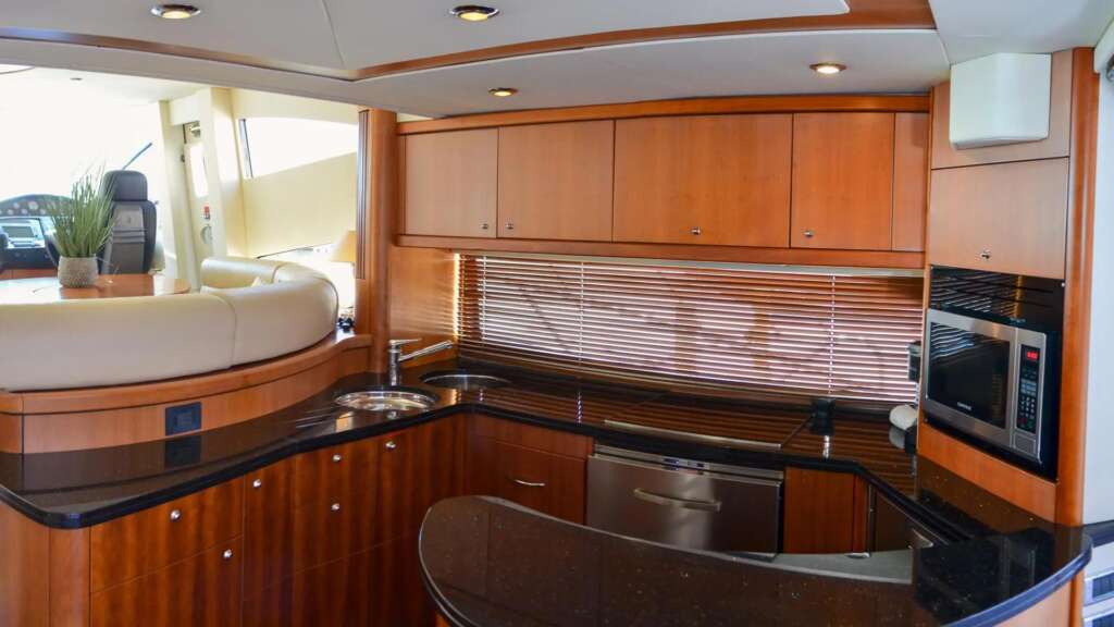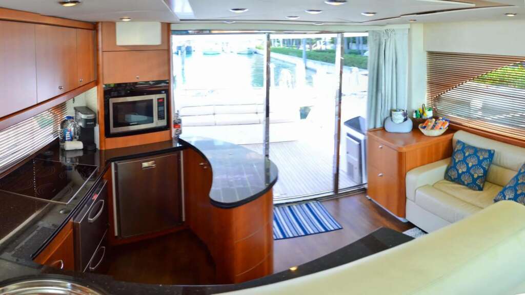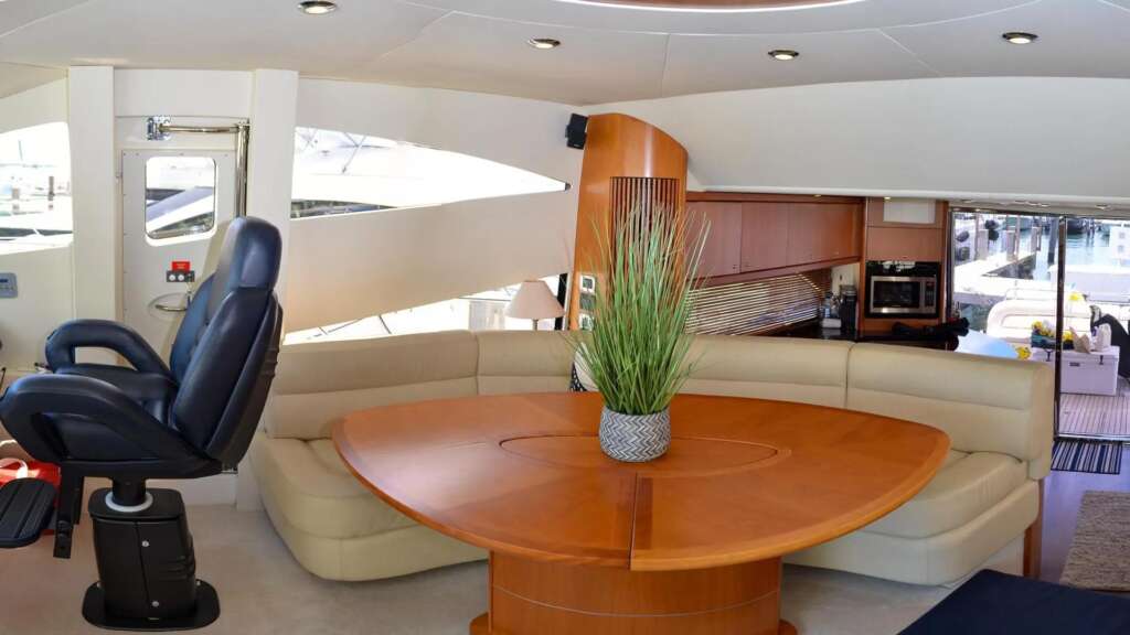 The Sunseeker 66’ features an open and bright layout designed for relaxation and entertainment. The aft deck flows seamlessly into a modern main salon, filled with natural light and ocean breeze.