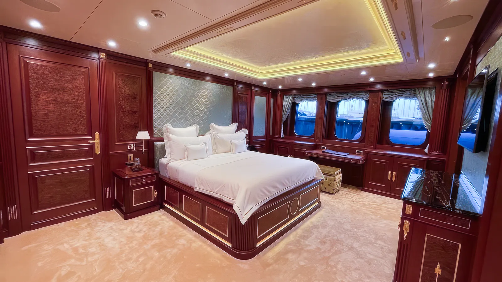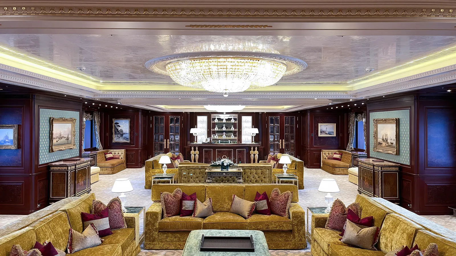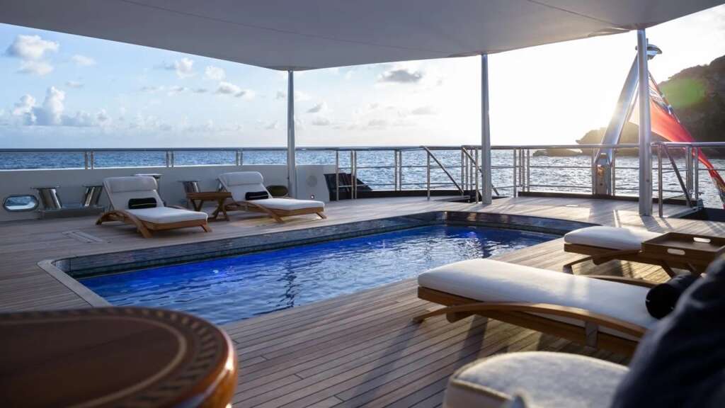 Onboard Features: Jet stream pool with height-adjustable floor, nightclub-ready dance floor, and a 14m x 9m outdoor cinema.